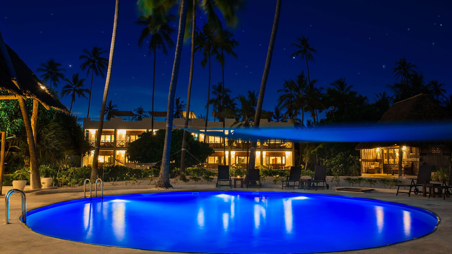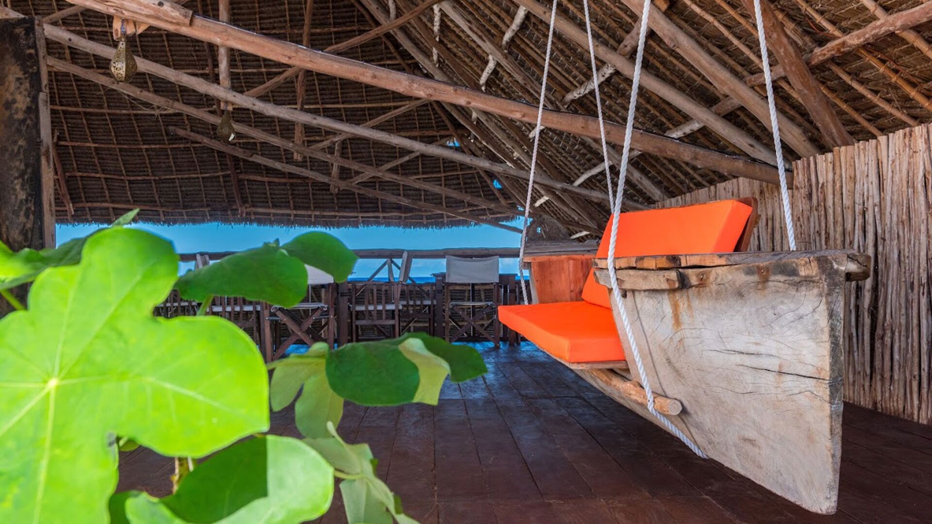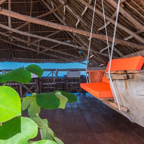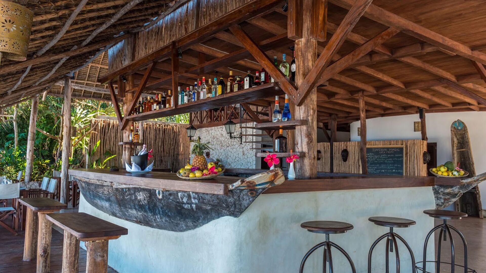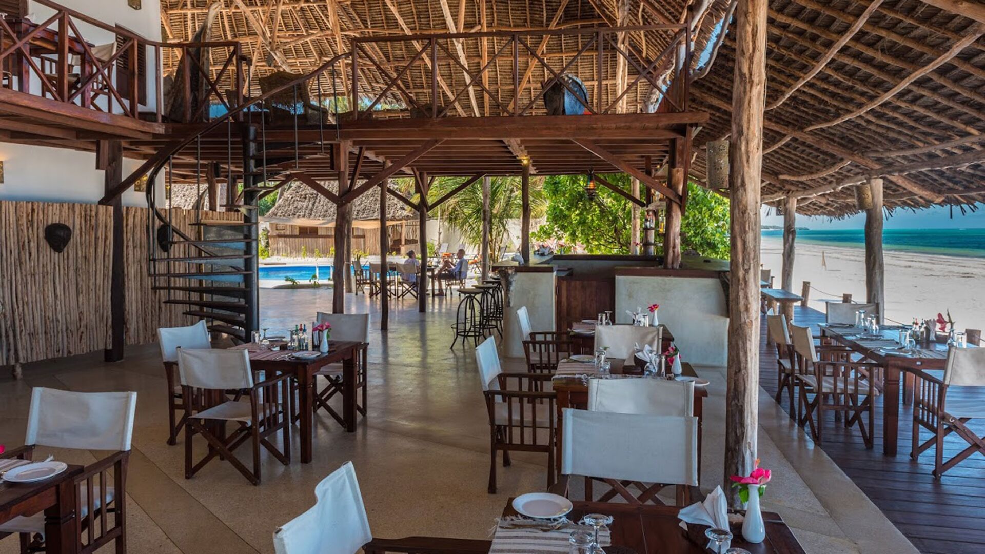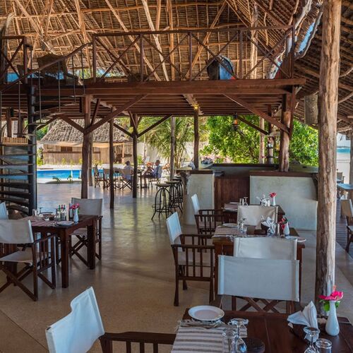Hotellet har restaurant og bar lige ned til stranden og den er lys, luftlig og indrettet i original stil, hvor der ikke er gået på kompromis med udsigten til havet. Der er en ekstra etage på restauranten som er tiltænkt som et afslapningsområde, hvor man kan nyde den fantastiske udsigt til øen, Mnemba Island.