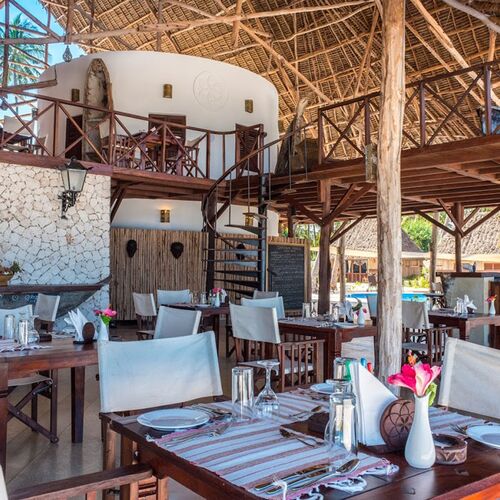 Restauranten har et godt niveau og maden er af lokale producerede råvarer. De kulinariske traditioner man finder omkring det Indiske Ocean, i godt samspil med krydderier fra Zanzibar, gør man nyder fantastisk mad i smukke omgivelser.