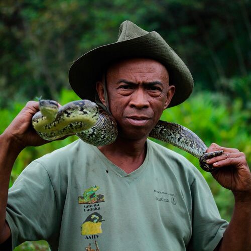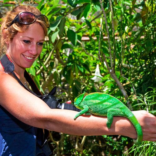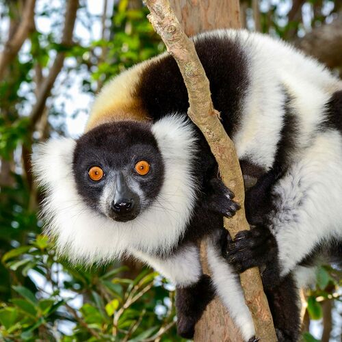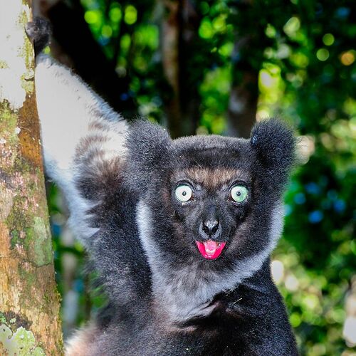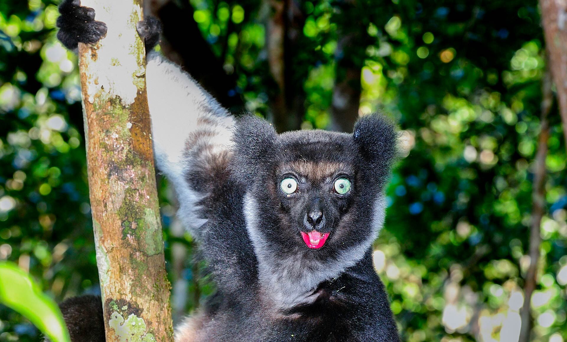 The park lies in the more humid part of the country with green, luxuriant rainforests with large trees and many lianas, mosses, ferns and bamboo, as well as circa. 100 species of orchids that flower here from September to January . Amongst the parks animals the biggest attraction is the biggest lemur species of all, the Indian. Its characteristic call can be heard throughout the forest and a couple of family groups have become accustomed to the presence of humans and are relatively easy to approach. The park is also home to 13 other species of lemur including the beautiful black and white sari, and the very unusual aye-aye, 15 other species of mammals including the hedgehog-like tenrec, circa 100 species of birds, around 50 species of reptile including the largest species of chameleon, 80 amphibians and many colourful butterflies.