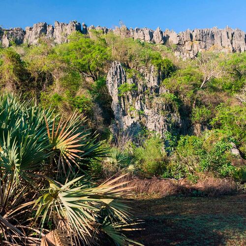 In the most northernly province of Madagascar you can find Ankarana National Park, consisting of spectacular limestone mountains, with sharp sharp ridges and jagged peaks - known on Madagascar as tsingys, created by the large amounts of rainfall here eroding the bedrock.