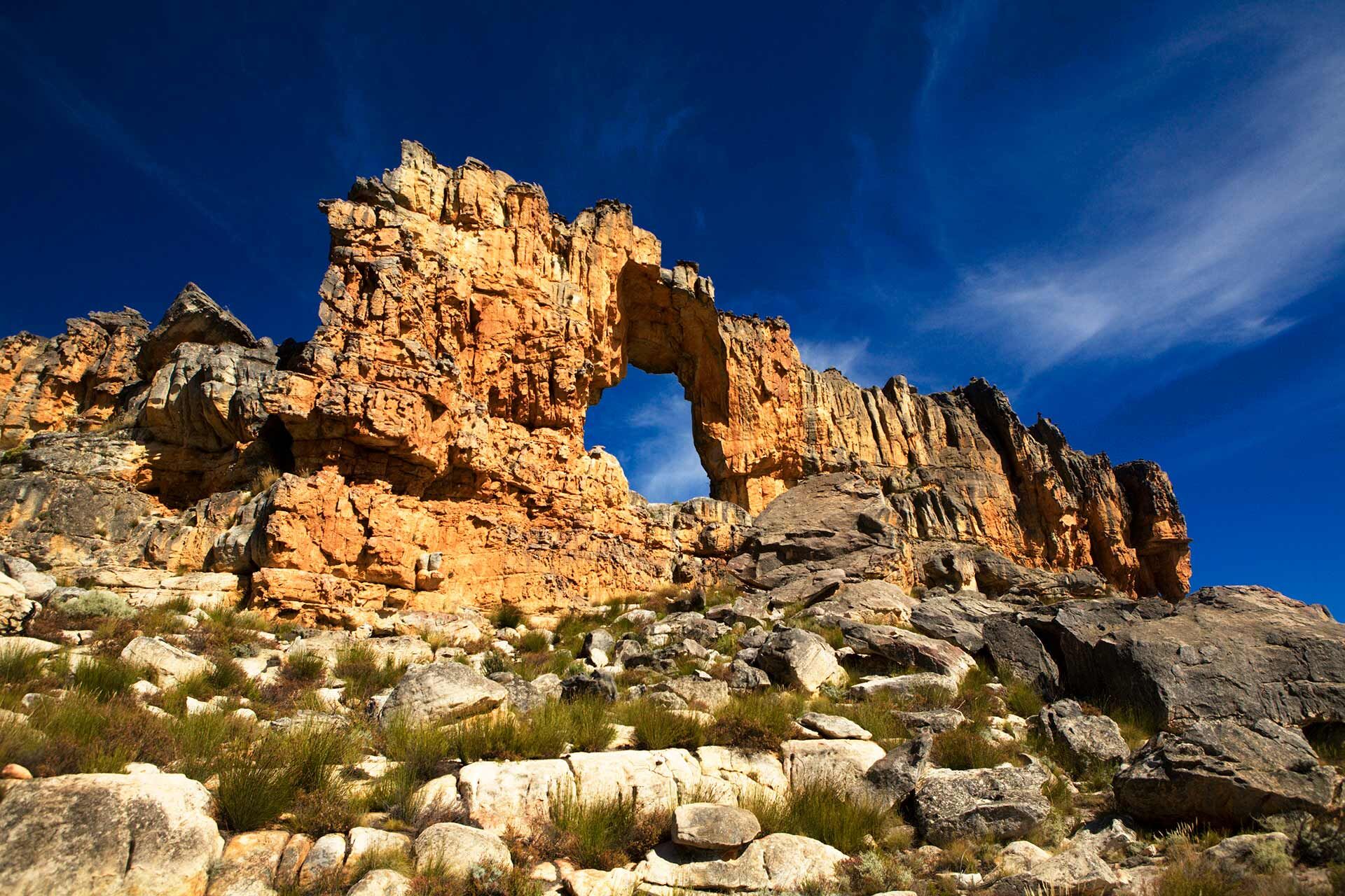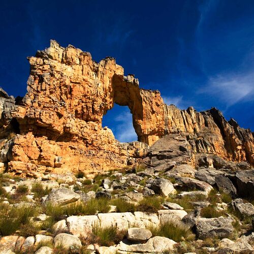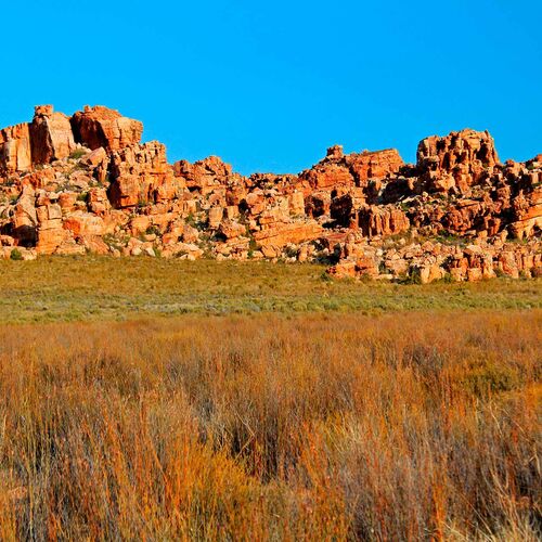These fantastic mountains which climb to some 2,000 meters in height, offer a dramatic landscape with beautifully eroded rock formations, and are easily reached from Cape Town, circa. 200 km away, along good roads. This protected district, which covers an area of some 710 km2 does not have many roads, but that is really the whole point as Cederberg is a wonderful district for walking. There are many marked paths in the area, everything from short and easy paths to long multi-day treks that require a high level of fitness and sleeping in simple huts, can be enjoyed here. For the more adventurous there are plenty of opportunities to go climbing in these spectacular mountains. In many places it is possible to take a dip in the small, natural rock pools, while elsewhere you can find some fine rock paintings made by people of the bushman culture some 6,000 years ago.