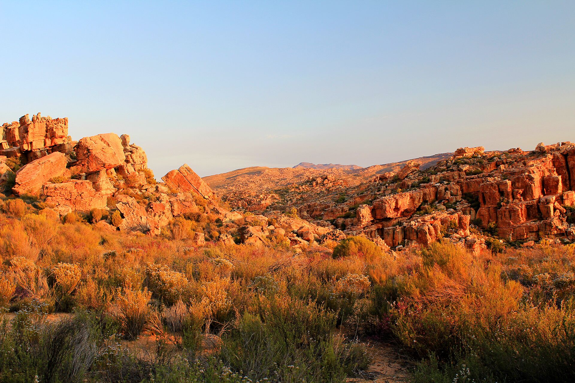 You should not expect to see much in the way of big game in this district, but there are a number of small antelope species and baboons are relatively common. There is actually a very good population of leopards here, but they are very shy and very difficult to see – and they don’t create any problems for the many walkers and climbers who visit the area. The tops of the large, majestic blackthorn trees are an ideal perch for many birds. The mountains are actually named after a rare species of coniferous tree, a member of the cedar family, that only grows here. The vegetation of the Cederberg Mountains is quite unique and very beautiful, especially when the plants are in bloom during the spring, around September and October – in fact this is where the now world renowned Roibos tea originally come from. There is a wide range of accommodation available around the Cederberg Mountains, but the most unique must be the hotel whose rooms have been built in amongst the beautiful rock formations.