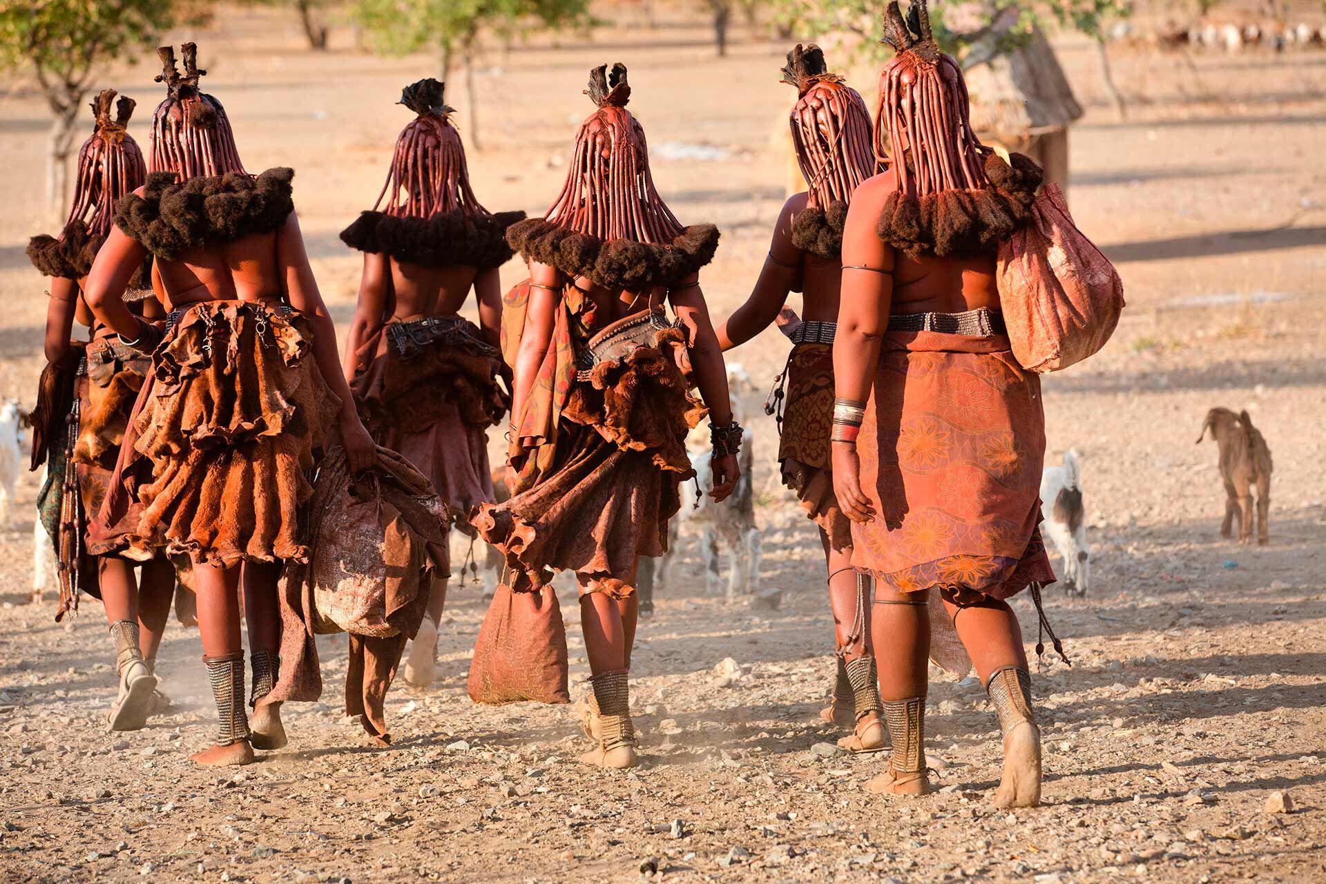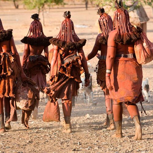 The area is also famous for the cave paintings and carvings, thought to be between 2,500 and up to 6,000 years old, near Twyfelfontein, and the 260 million year old petrified forest between Twyfelfontein and Khorixas. It is also possible to visit the local Himba-people who live in this harsh, dry landscape.