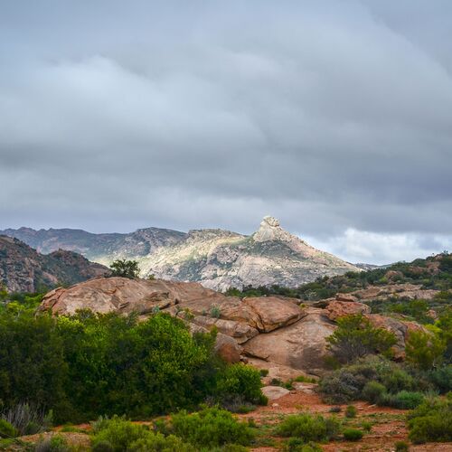 Kamiesberg is unusual amongst desert regions in that rainfall here is relatively predictable and frosts are rare. Rains here are often accompanied by heavy falls of dew and fog. During the summer temperatures can reach 40 °C.