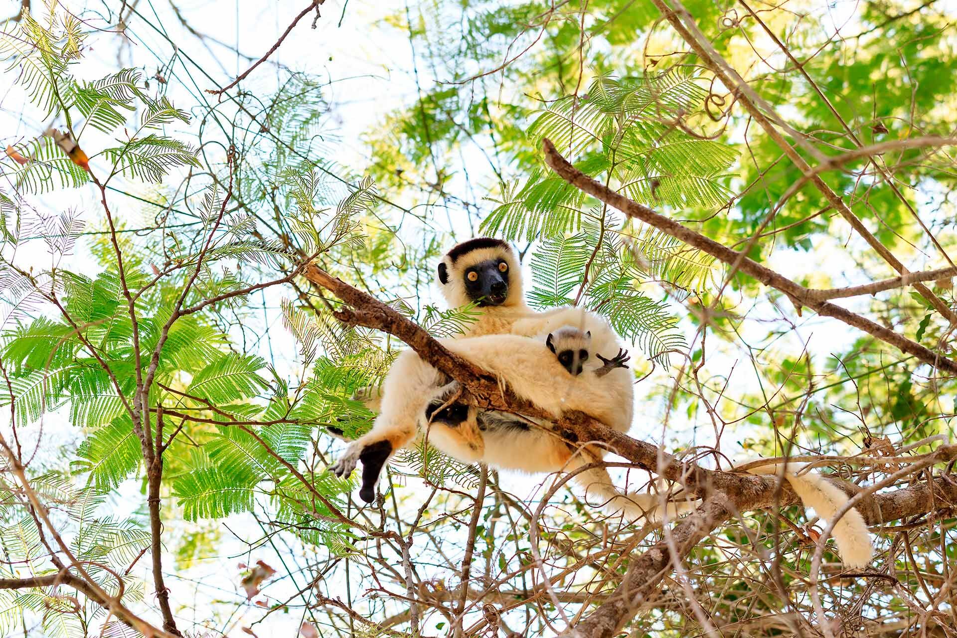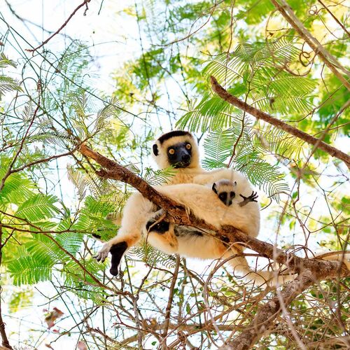 The park is home to an unusually dense population of lemurs, of which the Verraux Sifaka lemur and the Katta lemur are the most prominent of the 11 species found here. Madagascar’s largest predator, the fossa, is common in the area and this park is the best place on the island to see them. Up to 10kg in weight and, including its tail, one and a half meters in length, this cat-like animal is closely related to the mongoose. Around 50 species of birds, including flamingos, can be found here as well as circa. 50 species of reptile and 15 species of amphibians. Butterflies are also common, and nearly 100 different species can be seen here.