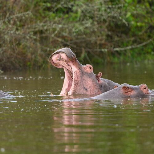 It is possible to enjoy an exciting boat safari on the lake, where there are many hippos and crocodiles, and it teems with beautiful birds including kingfishers, herons, storks and African fish eagle. There are also many otters living here, of three different species, but it takes time and a little bit of luck to see them. Walking safaris are also possible here, and it is one of the only places in Uganda you can go on a game drive at night, using spotlights to see some of the parks nocturnal animals including leopards, which are regularly seen here.