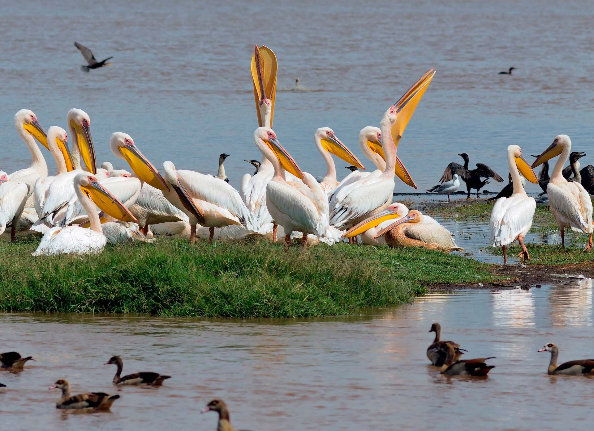 Some 150 km northwest of Nairobi lies the most visited, and perhaps the most famous, of Kenya’s five central lakes, the saltwater Lake Nakuru, which is totally surrounded by the national park of the same name. The lake is best known for its flamingos, and until recently it has been one of the best places in the world to see them as they were always there but due to higher waterlevels most of the flamingos have gone to Lake Bogoria and Lake Natron.