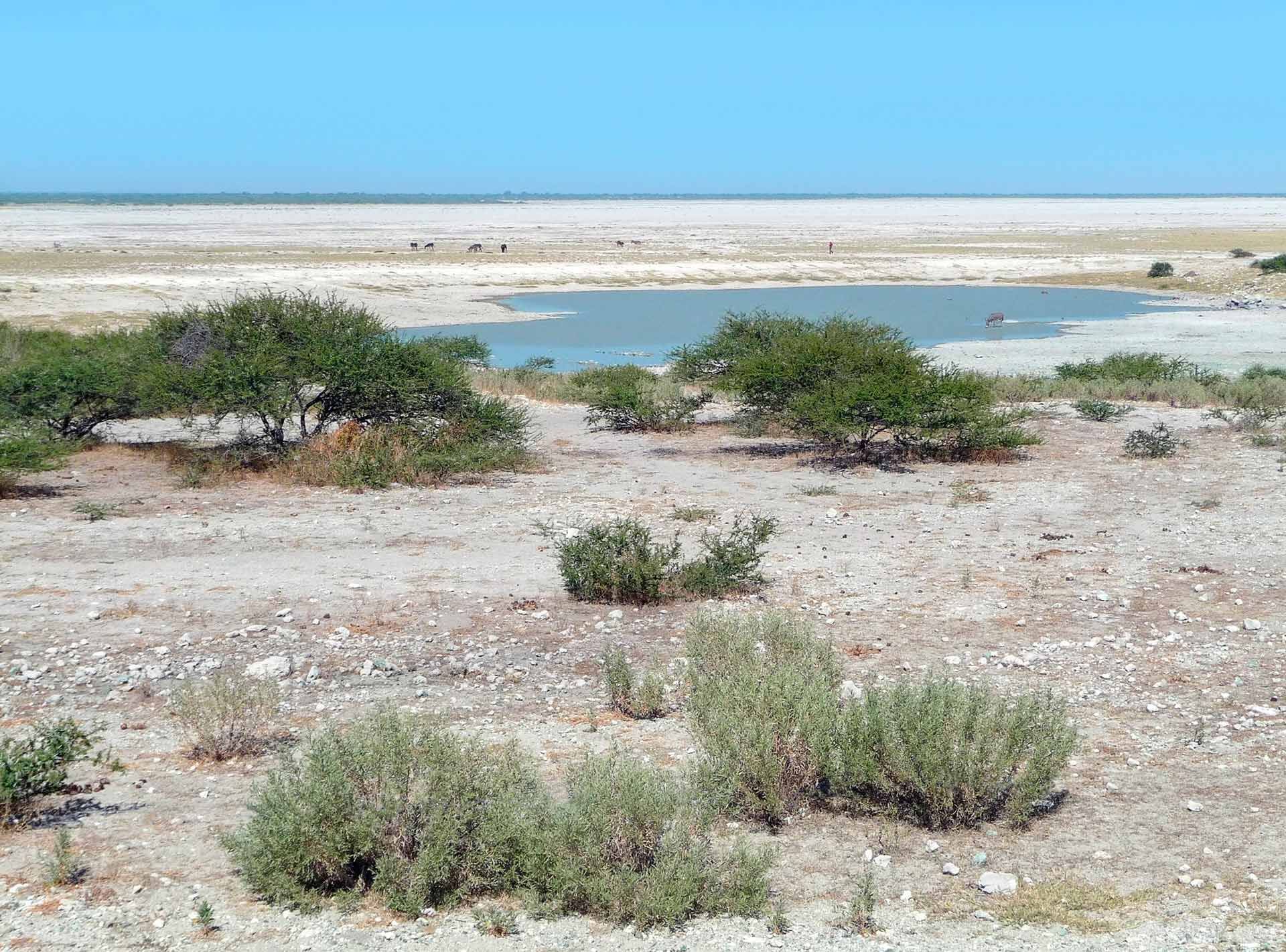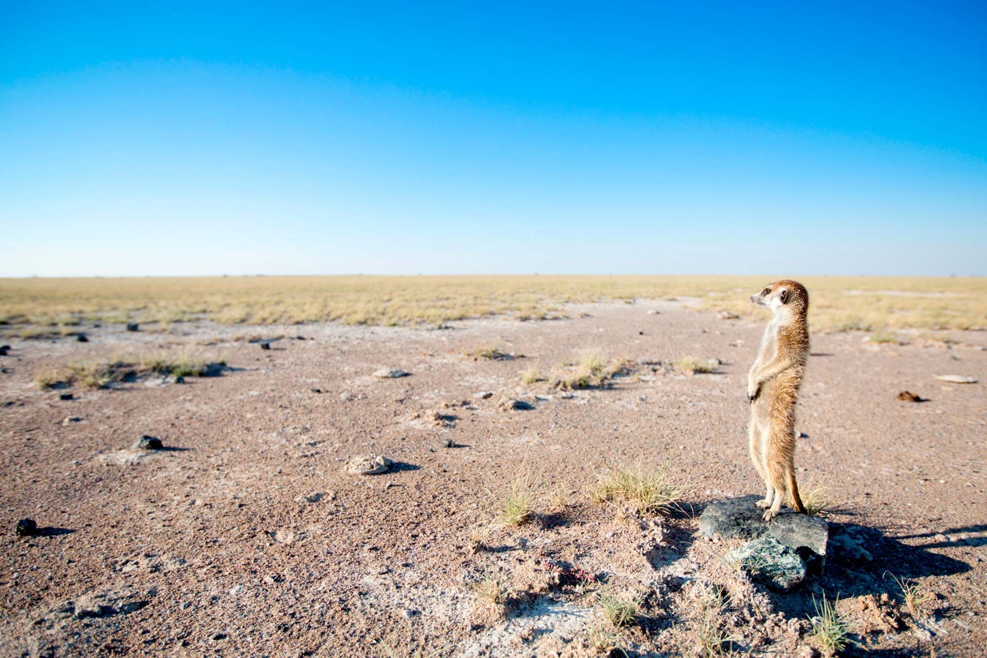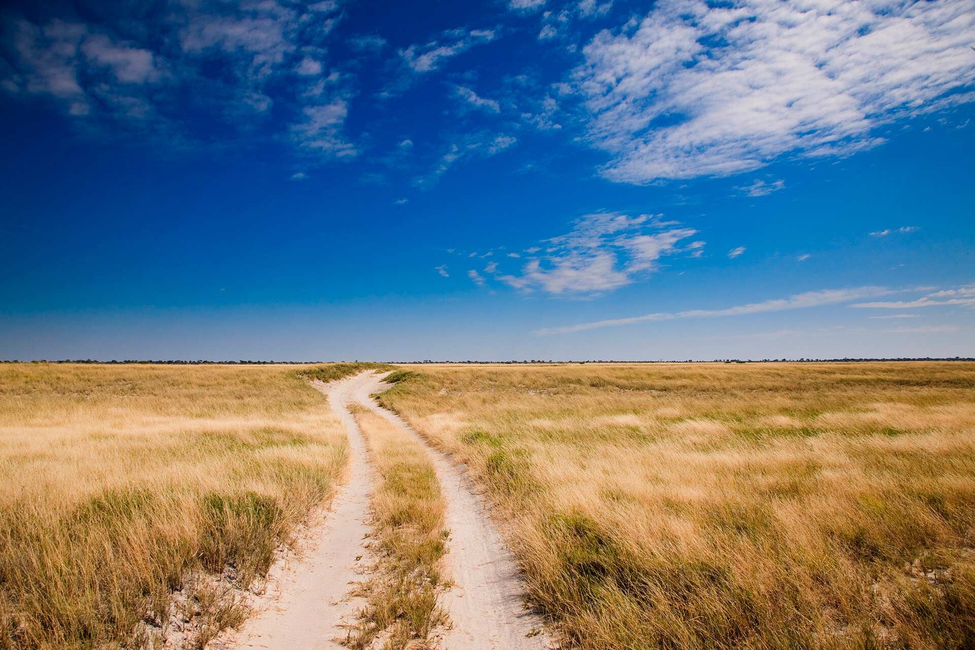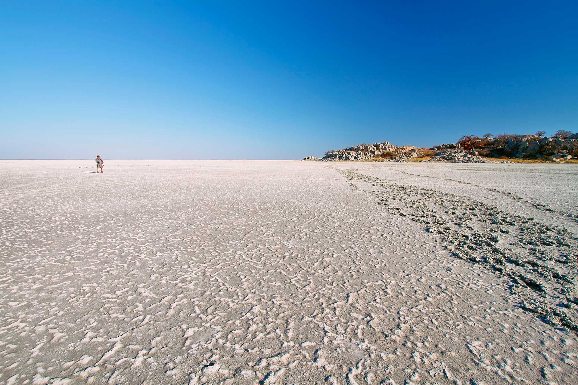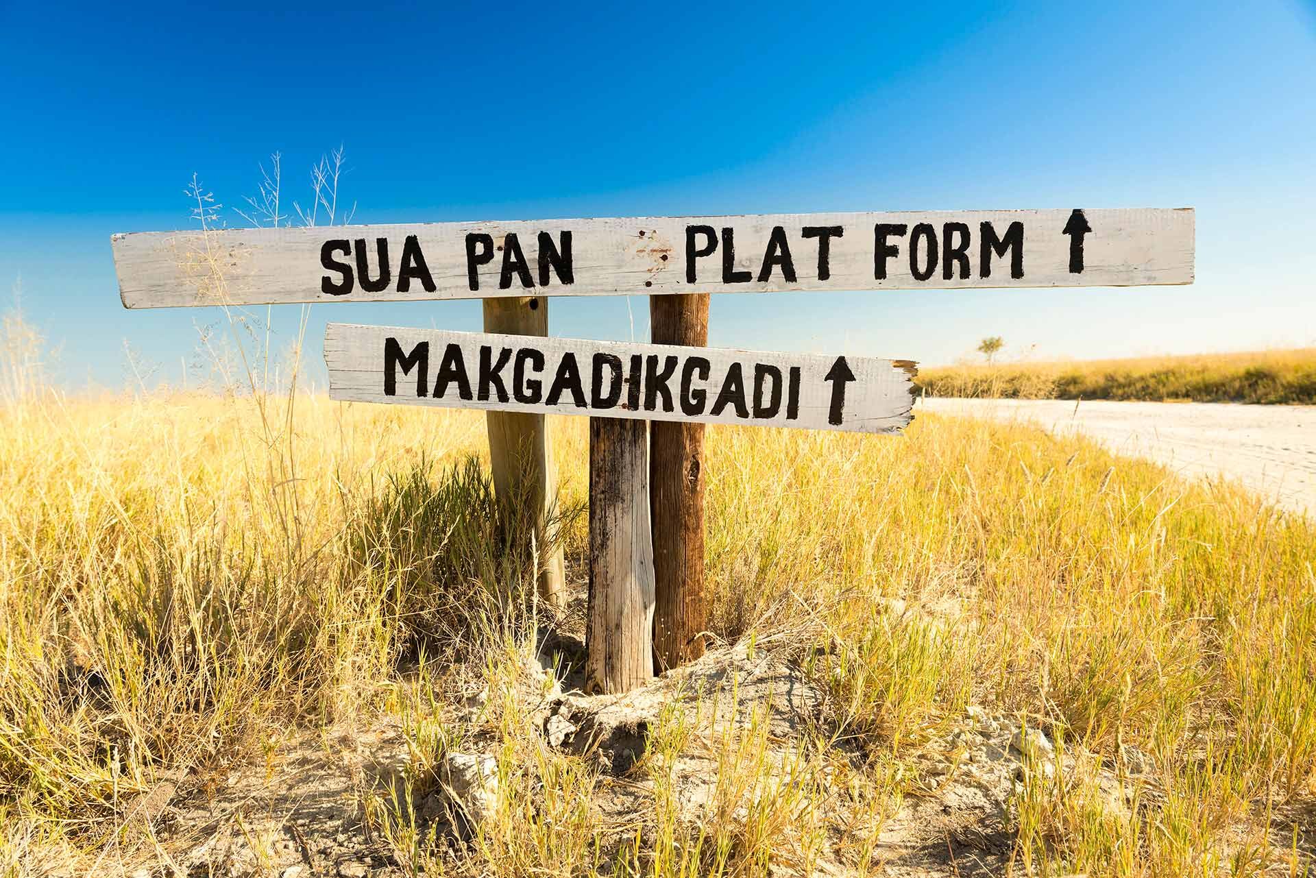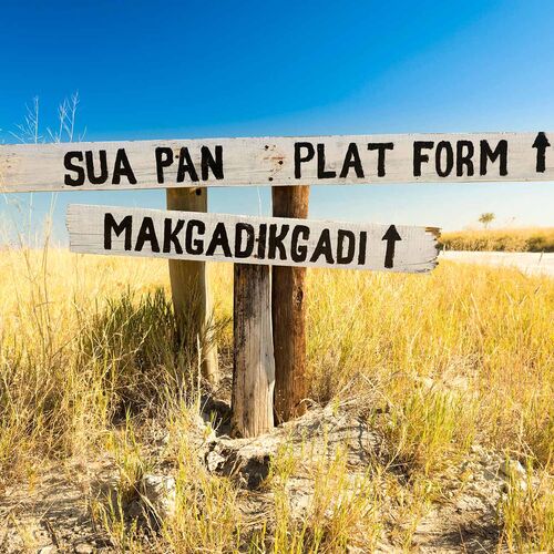 These two national parks contain not only some of the largest salt flats in the world, but also dry savannah dotted with beautiful palms and baobabs. They are separated by an asphalt highway, running from the east to the west. Along this road it is some 160km to the town of Maun, where there is a small international airport.