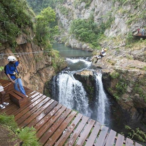 Oplev suset ved at glide gennem skovtaget i et af de sidste bjergwildnisområder tilbage i Swaziland. Beliggende inden for den skovklædte Sihlotswane-kløft, ved siden af de berømte Malolotja Falls, består Malolotja Canopy Tour® af 11 forhøjede skovplatforme, 10 rutsjebaner og en 50 meter lang hængebro, der krydser Majolomba-floden.