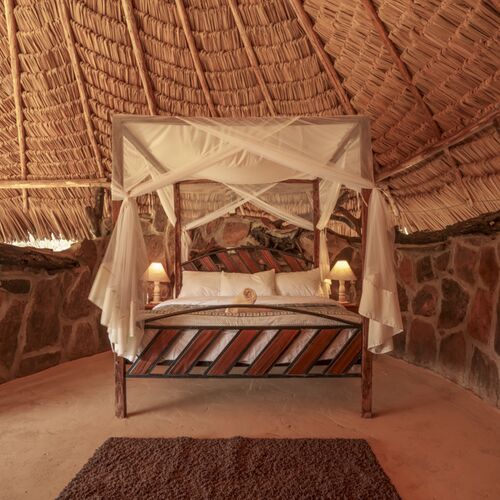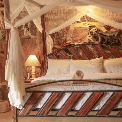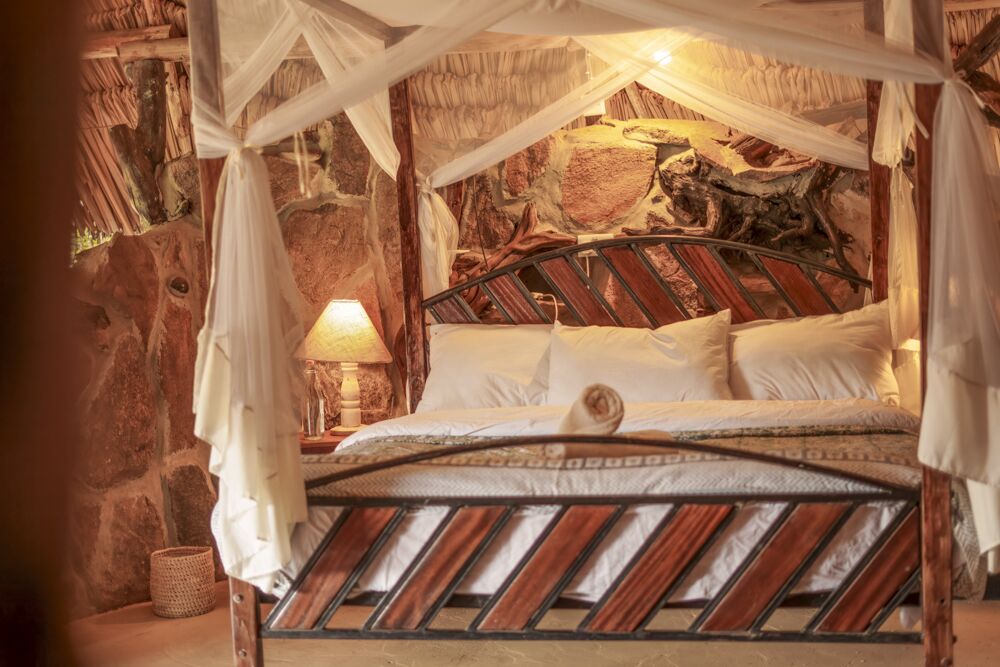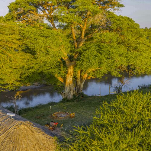 Lodgen har 5 private bandas (“ensuite private værelser”) der ligger langs floden, med terrasse/veranda, eget badeværelse (ensuite), komfortable king-size senge og mulighed for ekstra enkeltseng til familier eller grupper. olgaboli.com+2olgaboli.com+2