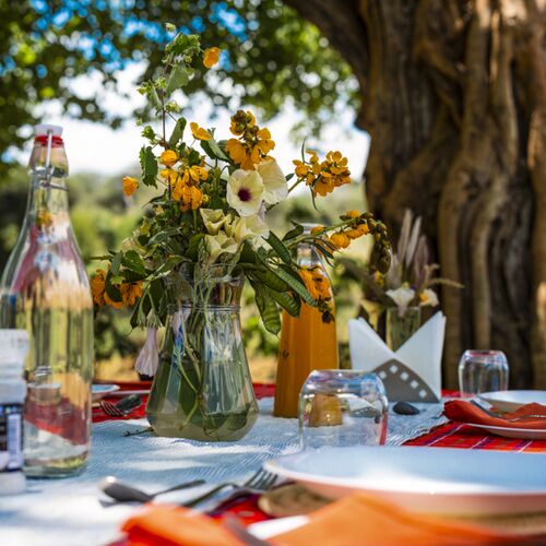 Der er et centralt fællesområde (“Mess”) med restaurations- og spisefaciliteter, bar, og et deck med udsigt over floden. Spisemulighederne kan være enten i det fælles område, under figentræet, eller direkte på verandaen. olgaboli.com+1
