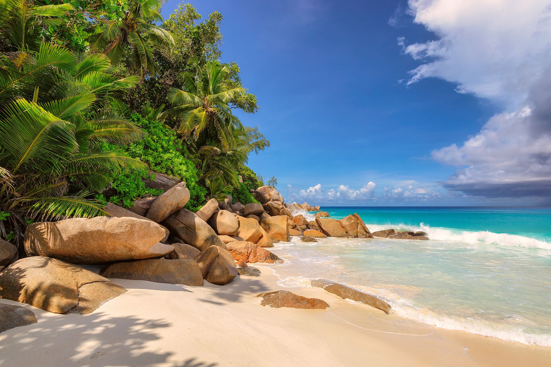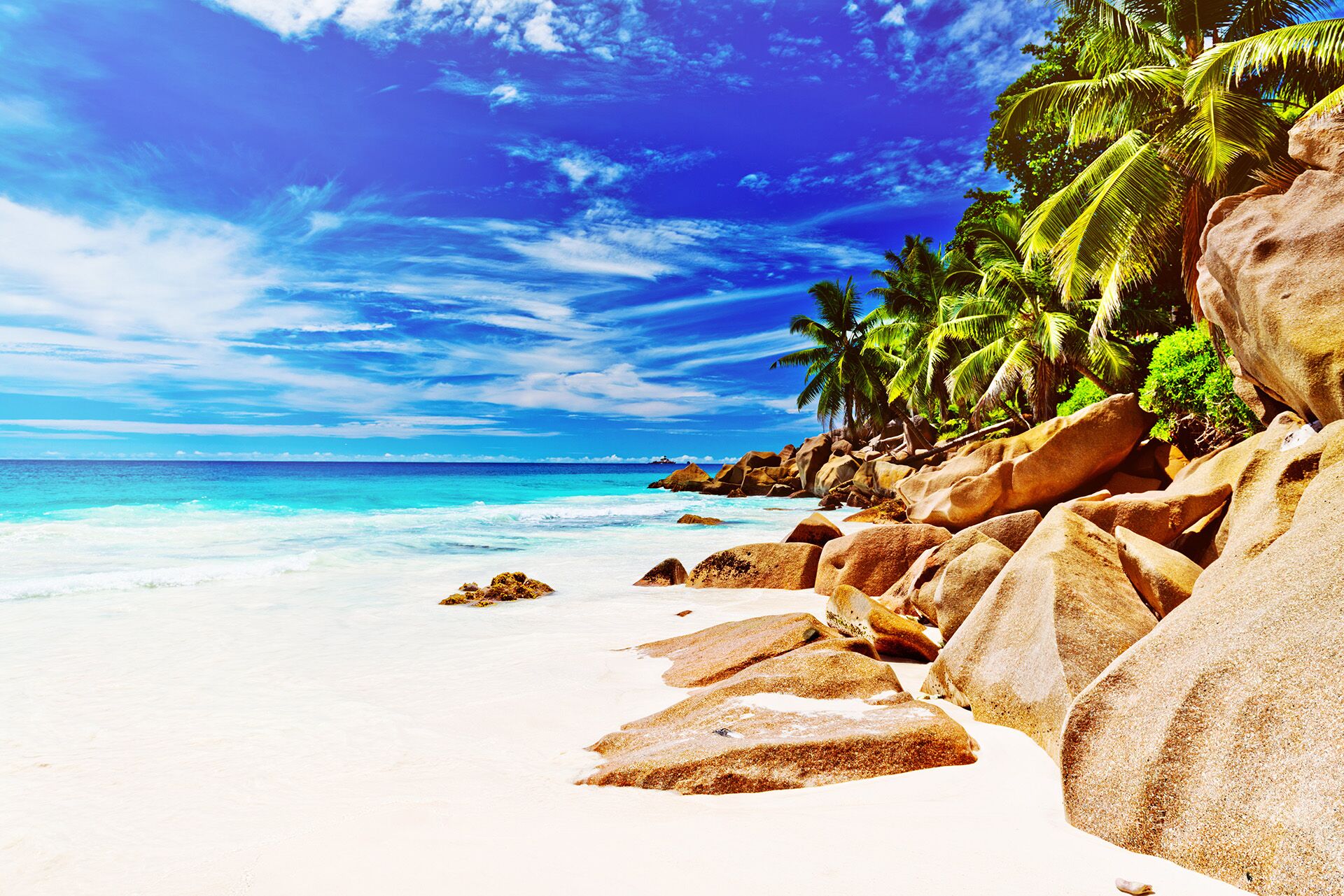 Praslin, which is the second biggest island in the Seychelles, was also called the “The Island of Palms” by early French explorers. Here you can find the rare Coco de Mer palm tree, which produces coconuts up to 26kg in weight.