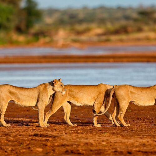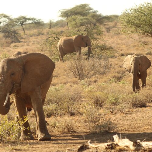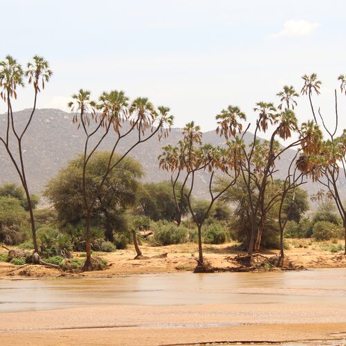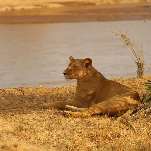 The three reserves lie next to each other and are only separated for administrative purposes. As well as the animals the reserves share the life giving waters of the Ewasi Ngiro river, whose name means “the brown river”. Part of the year the river appears dried up and can only be seen as a broad strip of sand with denser vegetation and bigger trees and palms than the surrounding area, but the water is there, hidden under the sand, in which Elephants and other animals are able to dig “wells”. Only during the rainy season, when the water falling on the highlands further south arrives here, is it possible to see why the river gets its name. The river water has a strong red/brown colour, reflecting the colour of the surrounding land.