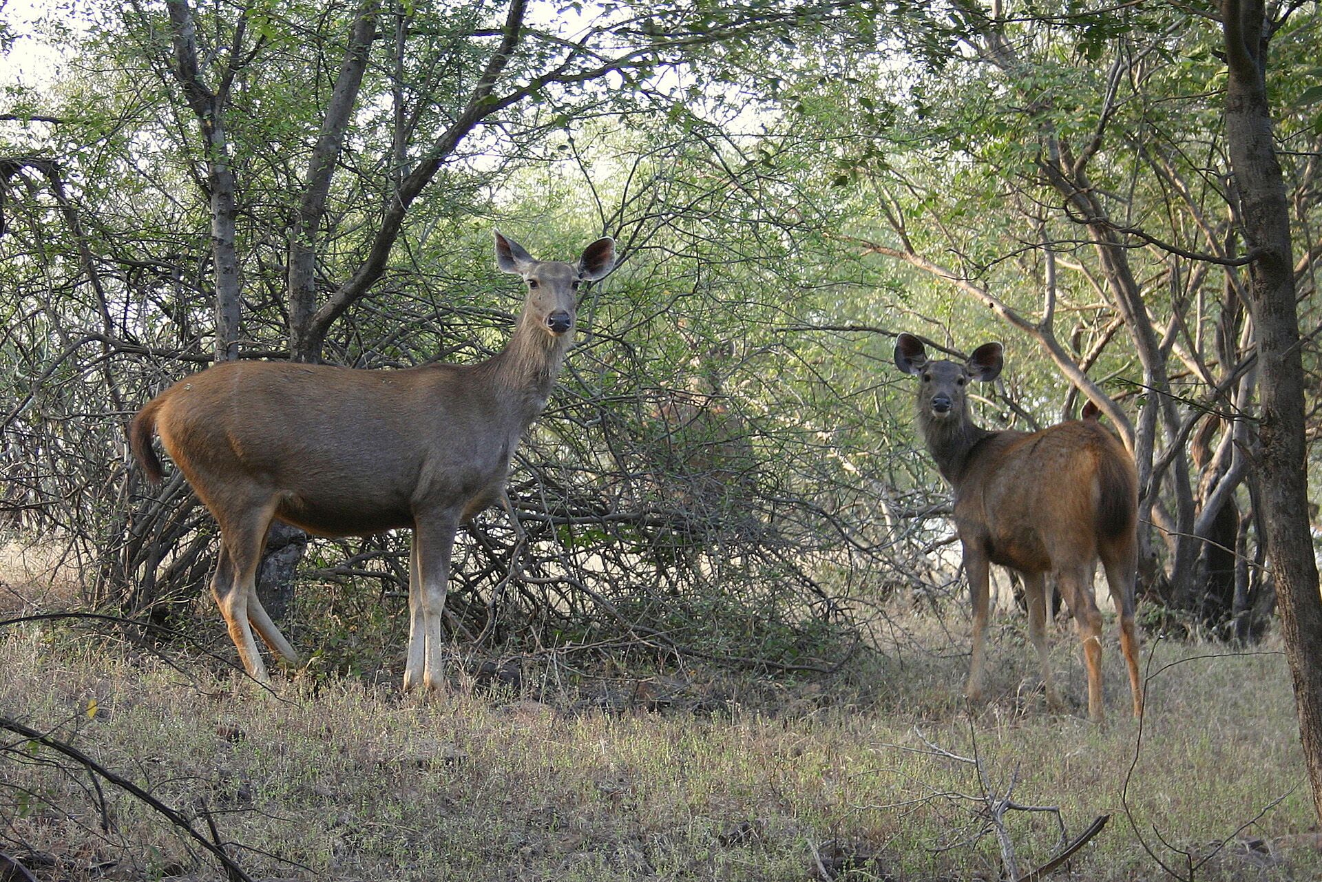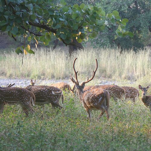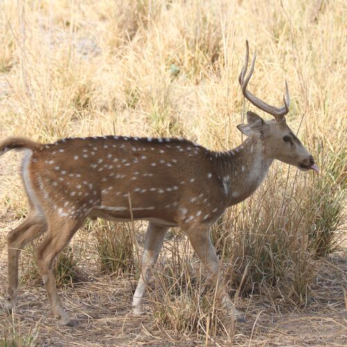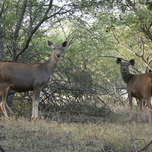 Sariska has robust populations of Axis and Sambar deer, and you can also find four-horned antelope, the large Nilgai antelope and wild boar here. Hanuman langurs and rhesus monkeys are common, and with a bit of luck you may spot predators such as leopard, jungle cat, striped hyena and Indian jackal. The impressive peafowl is common in the park, which is home to a great variety of birds, including many rare species.