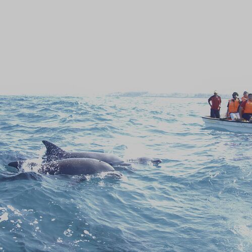 Zanzibar is located in the Indian Ocean, making the archipelago the perfect place to experience sailing on its blue ocean waters. Swimming with dolphins is a major tourist attraction on Zanzibar, especially around the town of Kizimkazi on the south coast of the island. It is from here the so-called dolphin safaris depart. The cost of a sail depends on the length of the tour and the standard of the boat, the same goes for the dolphin safaris, which can be found in many price classes on Zanzibar. After everyone has boarded the boat, the “hunt” for the dolphins begins. These beautiful animals are naturally both very curious and playful, and as the boat ploughs trough the waves, it will catch the attention of the dolphins. In this way the organizers will succeed in getting dolphins close to the boat, and you as a tour participant, will have the great pleasure of swimming with these amazing animals. Equipped with snorkel, mask and fins you just hop into the water and enjoy the wildlife of The Indian Ocean from the front row, and take some of the holiday’s best photographs.