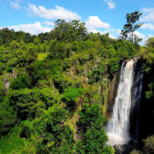 The central Kenyan highlands are located in two areas of now extinct volcanic activity, a large part of which is now occupied by the Aberdares- and Mount Kenya national parks, some 150-200 km north of Nairobi. The lower parts of these parks, still some 3,000 meters above sea level, are densely forested, while the higher lying areas are mainly large open heathlands. The Aberdares reach an altitude of just over 4,000 meters while the peak of Mount Kenya is the second highest in Africa, at 5,199 meters.