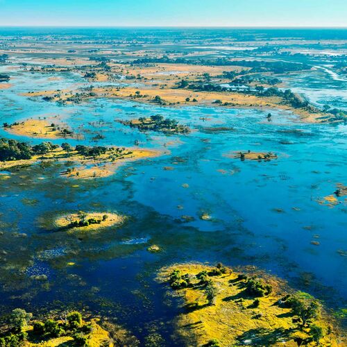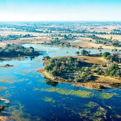 The Okavango is one of the world’s biggest inland deltas, but it is very unusual as its waters never flow into the sea. The delta simply runs out into the north west corner of the Kalahari Desert, the water either evaporating or sinking down into the sandy soil. Another unusual feature of the delta is that its water level is at its highest during the dry season between August and October. This is due to the fact that most of the river water has its origin in the Angolan highlands some 1,200km away, and as the delta is both very wide and very flat, the water takes months to reach the smallest channels. It is also easiest to see the large mammals during the dry season, although there are animals in the delta all year round. The closest international airport is Maun, some 100km south of the delta. Many light aircraft that provide a connection to a lot of the delta’s camps also start out from Maun, which is also the usual starting point or end destination for a vehicle safari in north western Botswana. The Okavango Delta is simply an oasis of life, an one of Africa’s greatest wildlife gems - and it feels like you can nearly have it it to yourself!