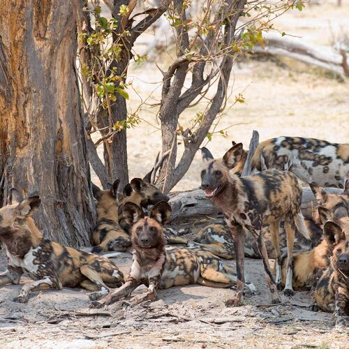 Which animal characterises, or is the highlight of, a safari in the Okavango rather depends on where you stay. Here you can find both so-called “wet camps” and “dry camps”, if it is possible for you to do so staying in a combination of the two would be ideal. In the wetter areas the focus in on safaris in motor boats and in the so-called Mokoros - dug out canoes traditionally made from tree trunks, that can be polled silently through the swallow water. In recent years Mokoros have started to be made from plastic, and while this may not sound so idyllic, there are good reasons to do so, namely to conserve the large trees that they used to be made from. In and around the water you will see hippos and many antelopes adapted to living in these wetlands such as the red lechwe and waterbuck. There are also many colonies of birds such as cormorants, storks and especially herons. Elephants can be seen all around the delta, in both the wetter and drier environments, as are many owls and birds of prey. On the larger islands and the savannah surrounding the delta you can see many zebra, buffalo, impala, and wildebeest. Predators are common, and you can find all of the big cats here. One of the largest remaining populations of African Wild Dog is found in this area, they can roam freely between the Delta, Linyanti and Chobe, and can be seen frequently here. Spotted hyena are also common, often coming into conflict with the other large predators.