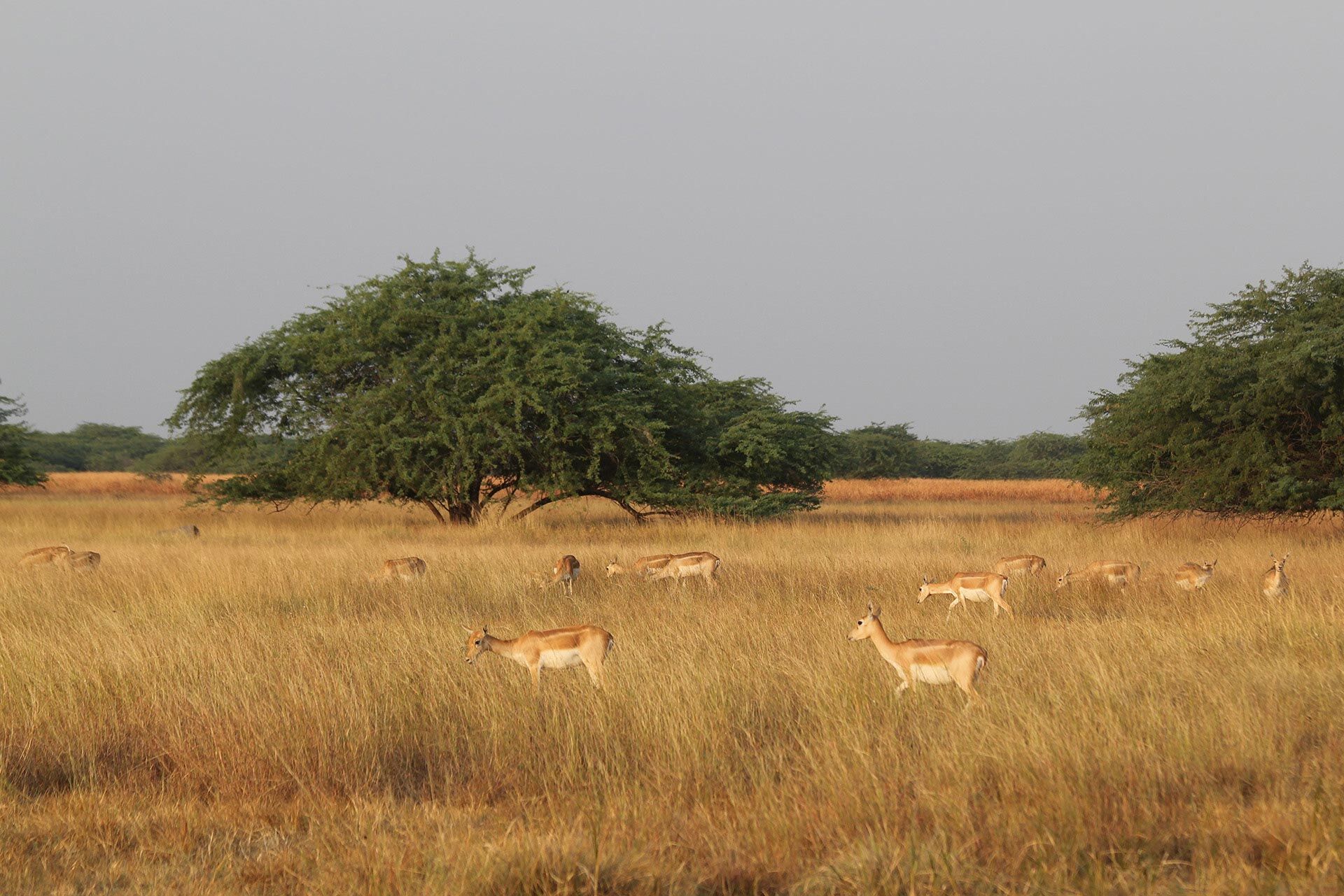 The relatively small national park, only 35 km2 in size, is dominated by grasslands with scattered bushes and acacia trees, reminiscent of classical African savannah that lies close to the coast and the Indian Ocean in the state of Gujarat. The area also has a number of lakes and waterholes, together with areas of mudflats, and saline land closest to the coast.