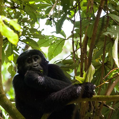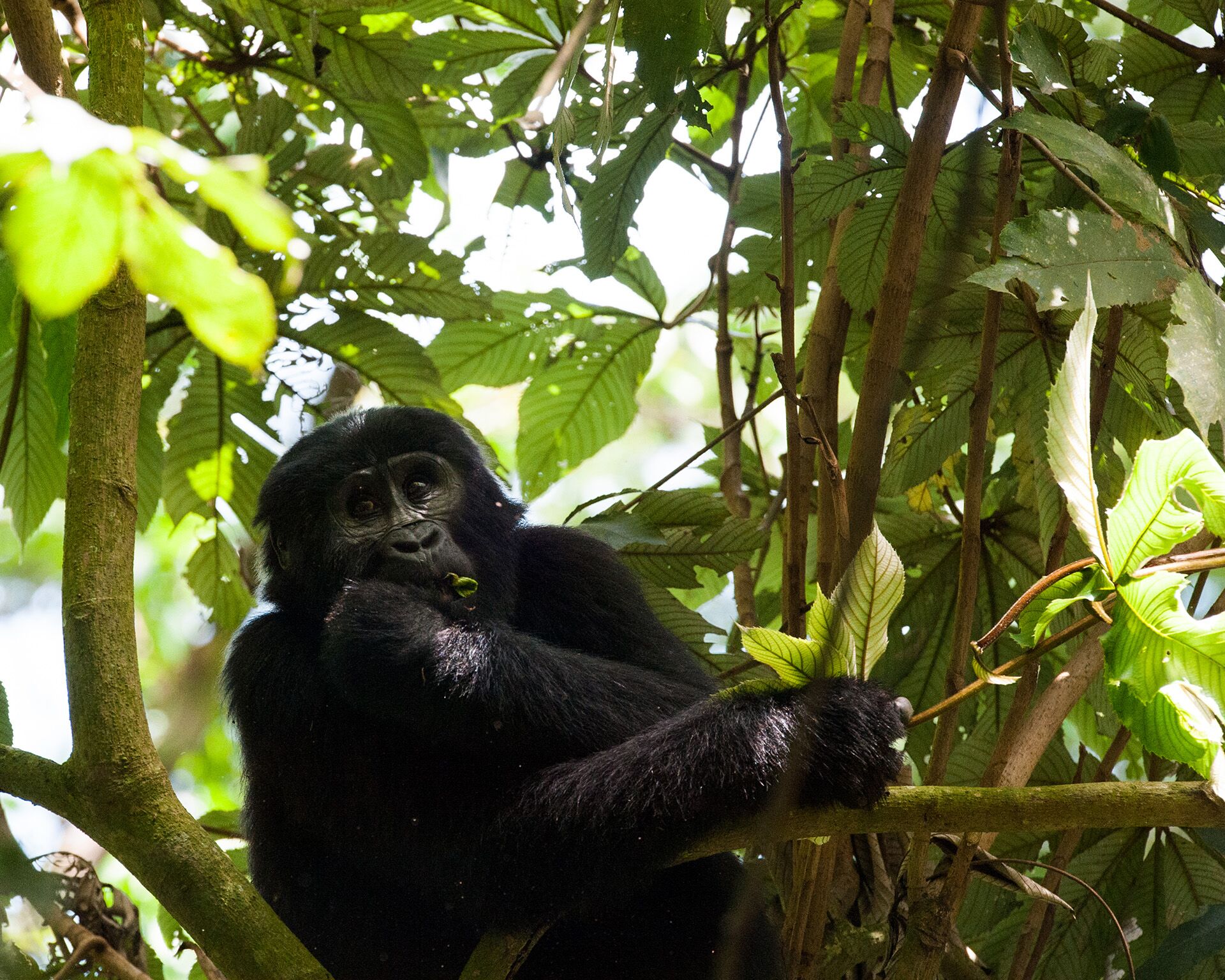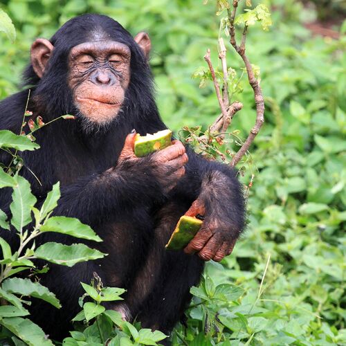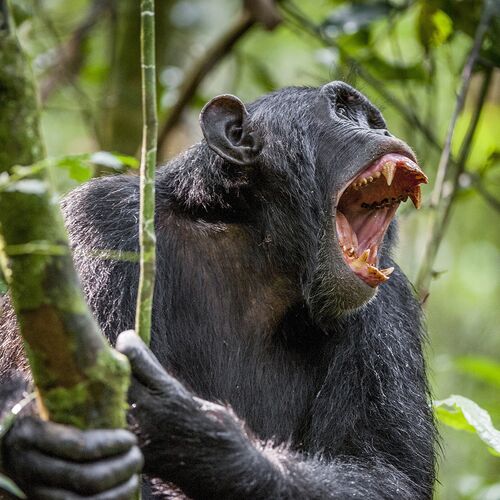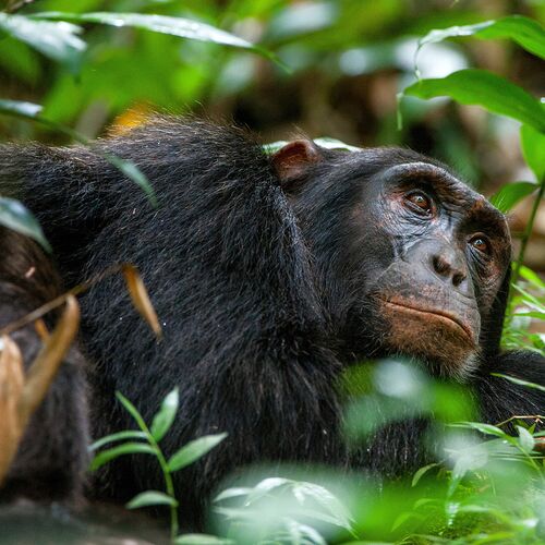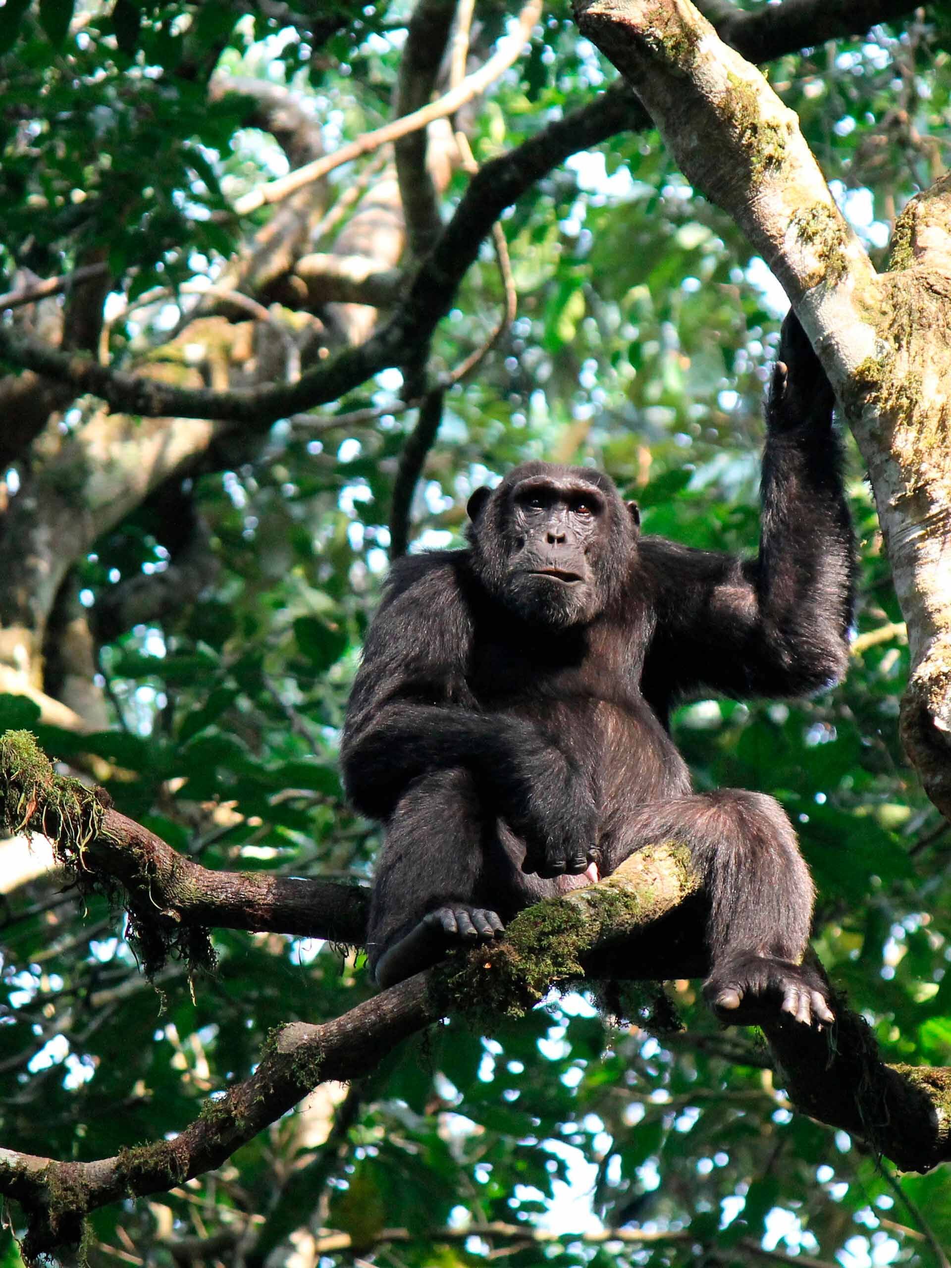 There are two species of chimpanzee, the common chimpanzee and the smaller bonobo (sometimes called the pygmy chimpanzee). The latter lives in central Africa in inaccessible terrain south of the River Congo. The common chimpanzee has a wider distribution north of the River Congo, from western Tanzania and Uganda, through Central Africa and as far as West Africa. This is the species you can visit in the wild in Uganda and a number of other countries such as Tanzania and Rwanda. Meeting them can be an incredible and moving experience, but purchasing a chimpanzee-trekking permit is expensive, and a gorilla trekking permit even more so.