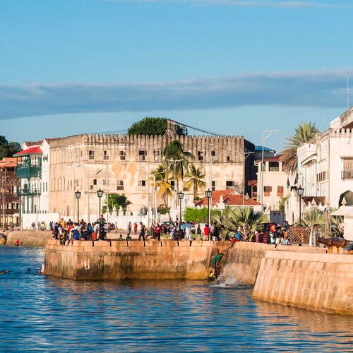 If you prefer just swimming and lying on the beach all day, then the north coast is your best choice, but many good hotels have also been built here, so you may find the beach more crowded. The ultimate solution to this dilemma is to stay in secluded luxury on the small private Mnemba Island, but this is rather expensive. Zanzibar offers plenty of activities in addition to the classic sports of sailing, snorkelling and fishing, for example visit a spice plantation, take a tour to the beautiful Jozani Forest with its distinctive monkeys, or swimming with wild dolphins off the south coast. For scuba divers some of the small islands off the coast are the highlights here, while more experienced divers will find that the neighbouring islands of Pemba and Mafia, respectively 50 km to the north and 150 km to the south, offer the greatest attractions.