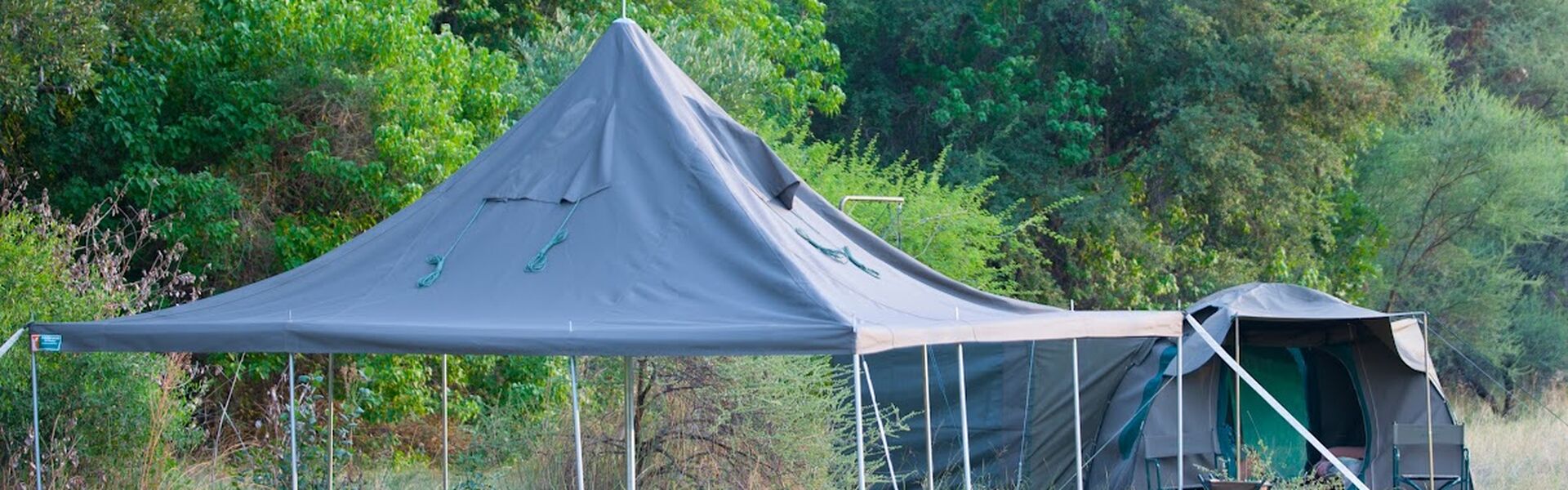 Teltene er rummelige, med gode senge, samt lille terrasse med safaristole, og der er privat bad og toilet til hvert telt. Derudover er der et hyggeligt fælles spise- og opholdstelt, hvor man kan sidde og nyde den gode mad, og tale om dagens oplevelser, mens man lytter til aftenens og nattens lyde fra bushen og betragter den utrolige afrikanske stjernehimmel.