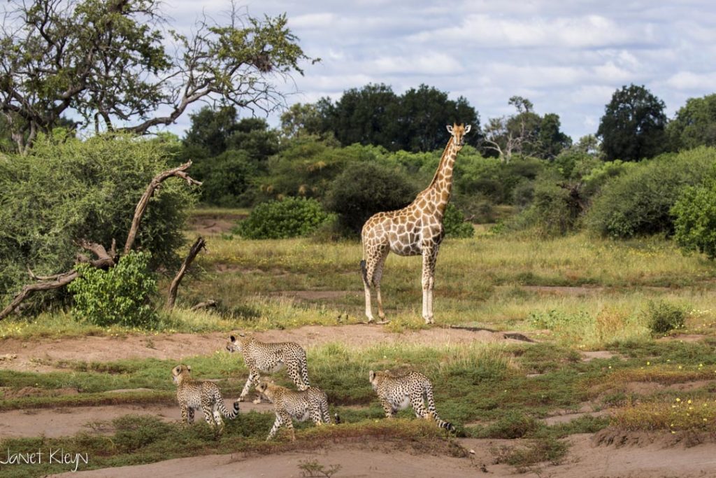Alle elsker giraffen, og det er for de fleste et af de mest eftertragtede dyr at opleve på en safari. Det overrasker ofte folk, hvor høj giraffen egentlig er. En fuldvoksen hangiraf måler nemlig op til hele 5 meter i højden! Giraffer har et særligt led der gør, at de kan vippe hovedet vertikalt. Denne funktion kombineret med dyrets 35 cm lange tunge, som gør det muligt for giraffen at spise blade fra selv en tornbeskyttet gren, giver savannens højeste dyr en klar fordel sammenlignet med andre planteædere. Prøv at forestille dig en fantastisk udsigt giraffen har, for ikke at nævne fordelen ved at kunne holde udkig efter rovdyr i sådan en højde. Fordi giraffen qua dens højde har så god sigtbarhed, er det ikke usædvanligt at f.eks. zebraer ”hænger ud” i nærheden af den, så de også kan få fordel af giraffens udsyn. Ja, selv vi mennesker drager nytte af giraffens evne til at holde udkig, for hvis den stirrer intenst i en retning, så kan man være ganske sikker på, at der er noget der, som er værd at undersøge nærmere.