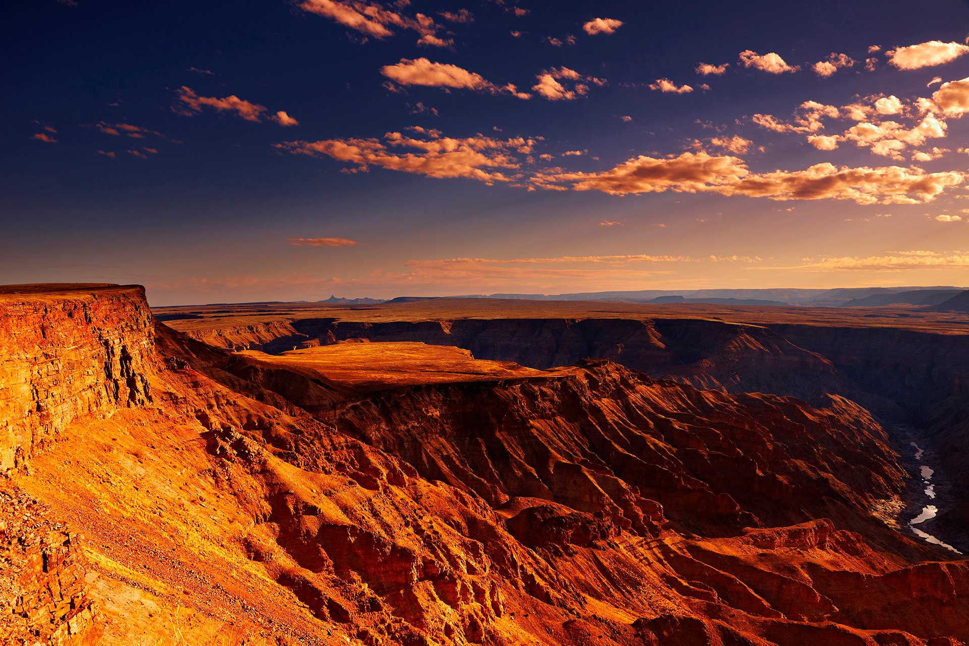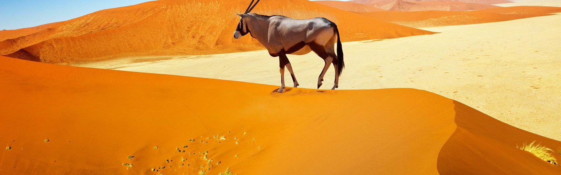Namibia er landet med enestående ørkenlandskaber og særdeles gode safarimuligheder. Ofte starter rejsen til dette land i hovedstaden Windhoek, der ligger centralt i landet og midt mellem de største attraktioner. Den østlige og sydøstlige del af Namibia består primært af relativt fladt og tørt land, hvoraf en del af dette tilhører Kalahari-ørkenen, der har sin største udbredelse i nabolandet Botswana. Mod sydvest finder du Namib-ørkenen, hvor størstedelen er beskyttet i nationalparken Namib-Naukluft, der rummer nogle af verdens højeste klitter. Her findes der ganske få, men særdeles specielle og smukke dyr. Er du mere til storvildt, er det klart i den nordlige del af Namibia der skal aflægges besøg. Her ligger den store Etosha Nationalpark, hvor der både er et enormt og varieret fugleliv samt fire af de kendte ”Big Five” – kun bøflen må du undvære i Etosha. Namibia er klar til at fortrylle dig med sit enestående orange-røde landskab i morgensolen og sine spektakulære safarioplevelser.