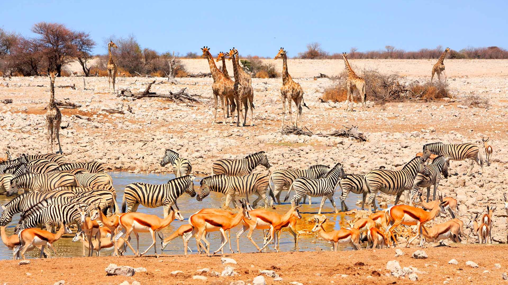 Særligt er Namibia kendetegnet ved dets klitter, ørken og saltsletter, men landets dyreliv er altså bestemt heller ikke kedeligt. Med de smukke omgivelser er det oplagt at tage på fotosafari, hvor du kan tage nærmest magiske billeder af dyrene med det mest spektakulære farve- og skyggespil i baggrunden. Hvis du ønsker at møde nogle af de mere ”kendte dyr”, er det som nævnt den nordlige del af landet og Etosha Nationalpark, du skal besøge. De mange vandhuller i den sydlige del af parken er den primære årsag til parkens vildtbestand, og det er også her, at du har mulighed for at se de store rækker af dyr, der flokkes om vandet. I den varme tid inden sommerregnen falder, er det virkelig imponerende at iagttage vandhullerne. Omkring solopgang dukker de mange forskellige dyr op for at drikke, da de af frygt for rovdyr med bedre nattesyn ikke tør at bevæge sig ud til vandet i løbet af natten. Et helt fantastisk skue, som er dybt betagende – og værd at stå tidligt op for.