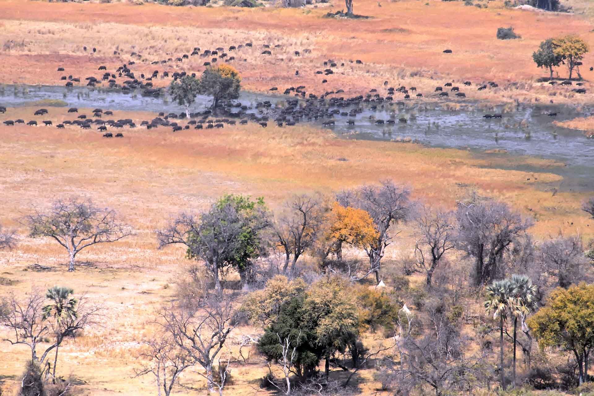 From the air you will enjoy an incredible view over the nearly endless landscape you find yourself in. Nxai Pan, together with Makgadikgadi Pan are some of the biggest salt flats in the world and are surrounded by arid savannah. During your flight you can see large herds of animals on their migration over the plains below you - a truly impressive sight.