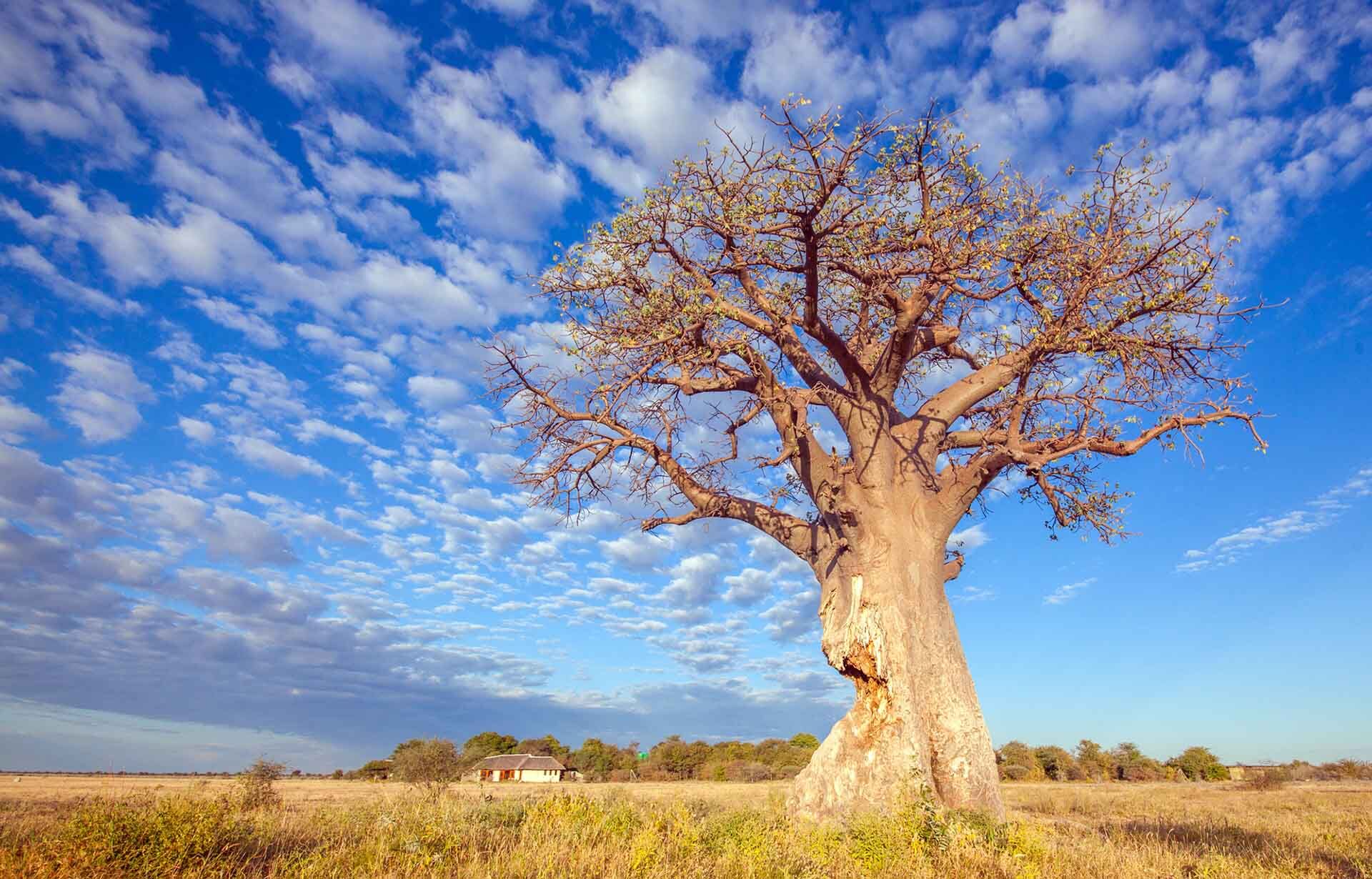Nxai Pan Camp opened in 2009 and today it is the only camp in Nxai Pan National Park that is open all year round. It lies facing to the east, with a view over the open grass covered plains that today cover the fossil lake floor or salt pan, from which it gets its name. This area was once covered by a huge prehistoric lake that once spread over central Botswana.