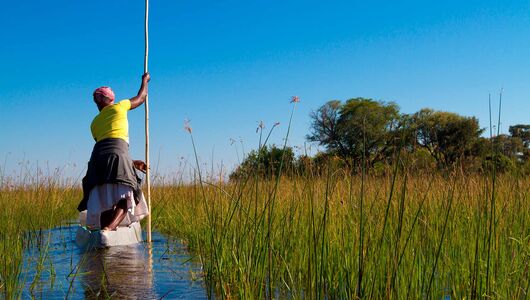 Which animal characterises, or is the highlight of, a safari in the Okavango rather depends on where you stay. Here you can find both so-called “wet camps” and “dry camps”, if it is possible for you to do so staying in a combination of the two would be ideal. In the wetter areas the focus in on safaris in motor boats and in the so-called Mokoros - dug out canoes traditionally made from tree trunks, that can be polled silently through the swallow water.