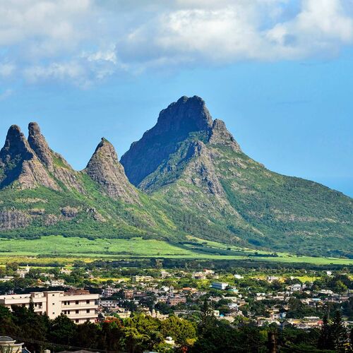 Central Mauritius is dominated by dramatic volcanic mountains, beautiful waterfalls and lush forests, all surrounded by fertile farmlands producing the islands most important crop and export - sugar cane.