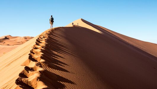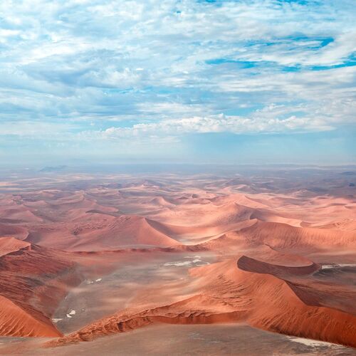 South western Namibia is totally dominated by the Namib Desert. The majority of the desert is under the protection of the Namib -Naukluft Park, which covers 6% of the whole country, some 50,000km2, which makes it the largest park in Africa and one of the very biggest national parks in the world. The most famous part of the park is the area close to Sesriem in its east, some 300km south of the capital Windhoek, and in particular Sossusvlei and Deadvlei, where there are a spectacular series of often dry flood plains.