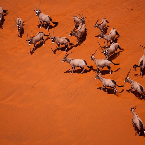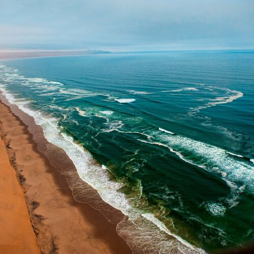 Along Namibia’s Atlantic coastline, starting at the border with Angola and stretching 500km to the south, lies the Skeleton Coast Park, which was created to protect the coastline and a desert than runs around 40km inland. The park gets its name from the many whale skeletons, and the close to 1,000 shipwrecks that can be found on the beaches. There are also a number of river deltas along the coast, which have a fine avifauna and can also be visited by antelopes and predators. Along the coast you can also find a number of large colonies of fur seals, but the largest of which with its 100,000 inhabitants, lies just south of the park, around 150km north of Swakopmund, in a small reserve created for them at Cape Cross. The seals are always very active in these colonies, the large males often taking part in violent confrontations with each other, as they seek to defend their small territories. Occasionally the colonies receive unwelcome guests, brown hyena, jackals and even lions sometimes come down to the beaches to raid the populations of fur seals.
