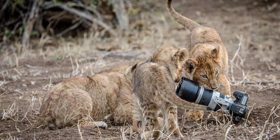 Løver er blandt de famøse ”big five”, de lever i flok, og så går de åbenbart meget op i eksklusivt fotoudstyr. ”Løveungerne tager selfies”. Sådan lød meldingen en dag over radioen til de andre guider under et game drive. Det må siges at være enhver fotografs værste mareridt at få taget sit kamera af et dyr undervejs på en safari, og i dette tilfælde havde safarigæsten kun lige hurtigt lagt sit kamera fra sig på jorden. Men det skulle ikke tage en hunløve lang tid at få poterne i kameraet, og så var det ellers tid til leg og ballade for den drilske løvefamilie og dens unger. Beklagende måtte guiden fortælle safarigæsten, at kameraet desværre måtte blive hos løvefamilien for nu.