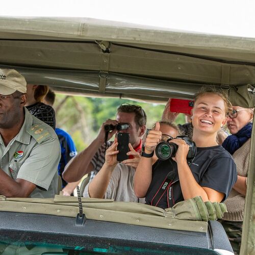 We start early in the day with a bushwalk. This type of safari is a wonderful experience, where you can really feel the intense presence of South Africa’s wildlife and get really close to the animals in their natural surroundings. On this tour, which will take place in Balule Nature Reservek, you can meet a selection of the animals that live in the South African bush, for example, giraffe, warthog, impala, waterbuck, baboon, zebra, and - if you are lucky- elephant and hippo. You will naturally be led by an experienced guide, who knows the area and its animals. The guide will tell you about the animals, from the mammals to the insects, the vegetation, climate and much more.
