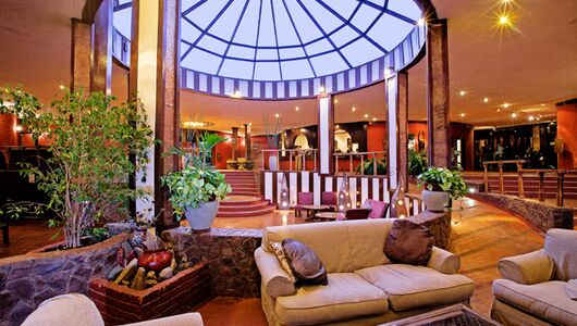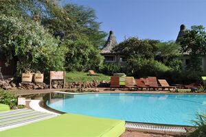 The style of this attractive lodge is themed on traditional East African culture, with circular buildings and conical roofs, and colourful Masai style furnishings and decorations. The lodge’s restaurant is built with glass walls from the floor to the ceiling which give guests a panoramic view of the crater, as does the colourful and aptly named Crater View Bar. From the main building you can walk along stone paved paths out past the swimming pool, a rare luxury in these parts, and then out to the rooms which stretch out on both sides from here.