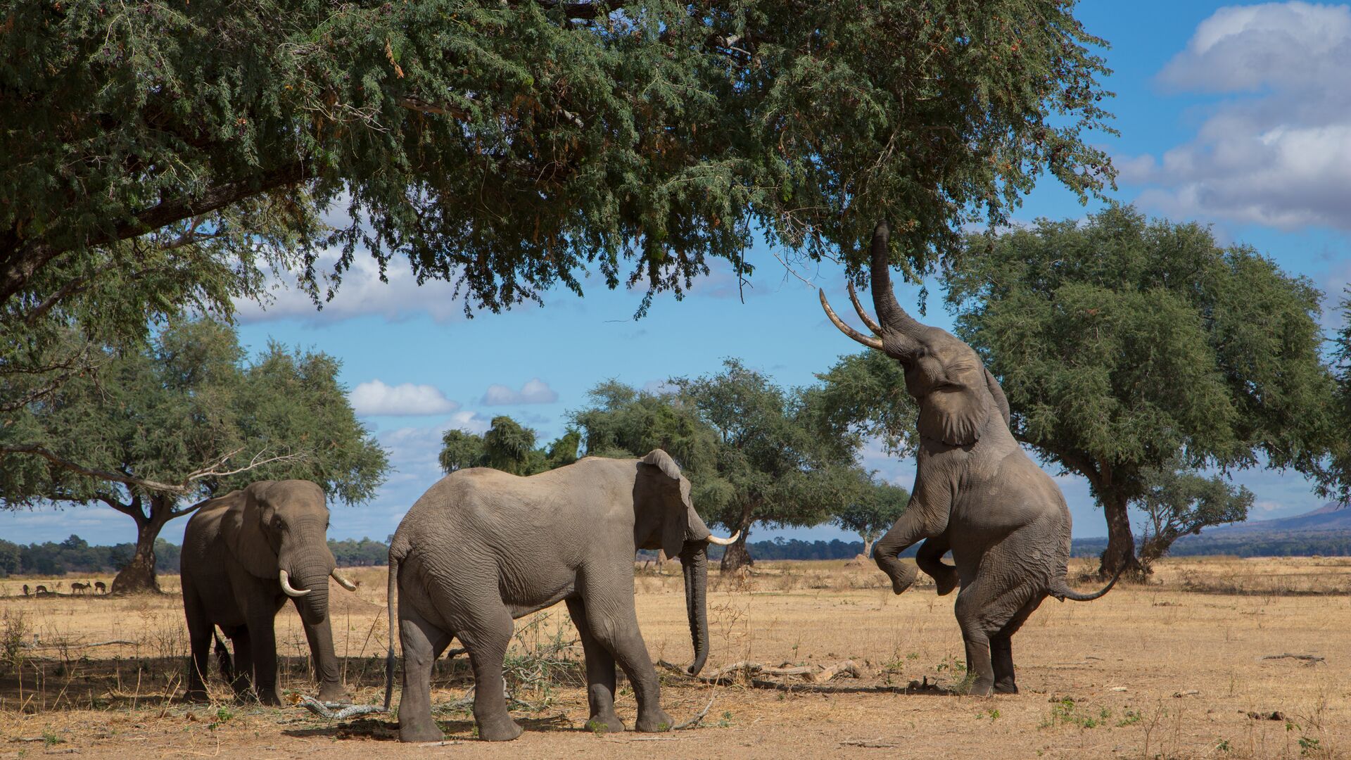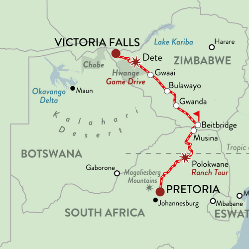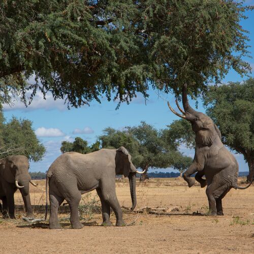 Hwange National Park, which is the same size as Northern Ireland, is the largest reserve in Zimbabwe, easily accessible and also the finest. The park borders Botswana to the south west and is only 200km south east from Victoria Falls, along a good tarmac road. It is also possible to fly in by light aircraft. The park is home to all of the Big Five: around 30,000 elephants live here, which is the second biggest population in Africa after Chobe in Botswana. Buffalo can be seen nearly everywhere in the park and move around in huge herds. Lions are commonly seen and the shy, largely nocturnal, leopard is also common in the park.