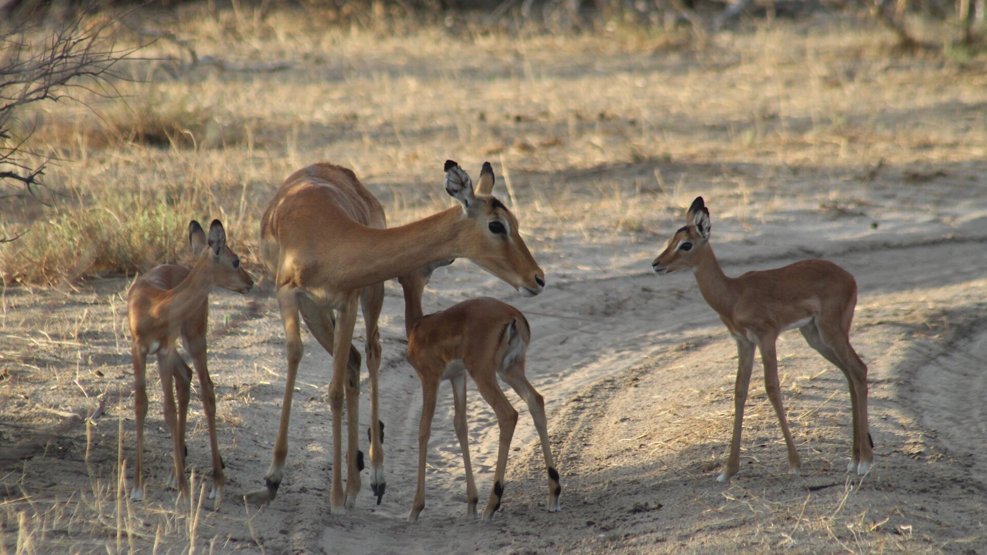 Around 60 waterholes can be found in Hwange, most of which are artificial. In the larger waterholes you see hippos, crocodiles and turtles. On the savannah, close to waterholes, live many giraffe, zebra, wildebeest, warthogs and countless antelopes, including some of the largest and most impressive species such as greater kudu, eland, roan, sablel and waterbuck. The park also houses large populations of baboons, spotted hyena and not least, the otherwise rare African wild dog. You will visit The Painted Dog Conservation Center, where you can get an insight into the important conservation efforts being made here to help protect the African wild dog.